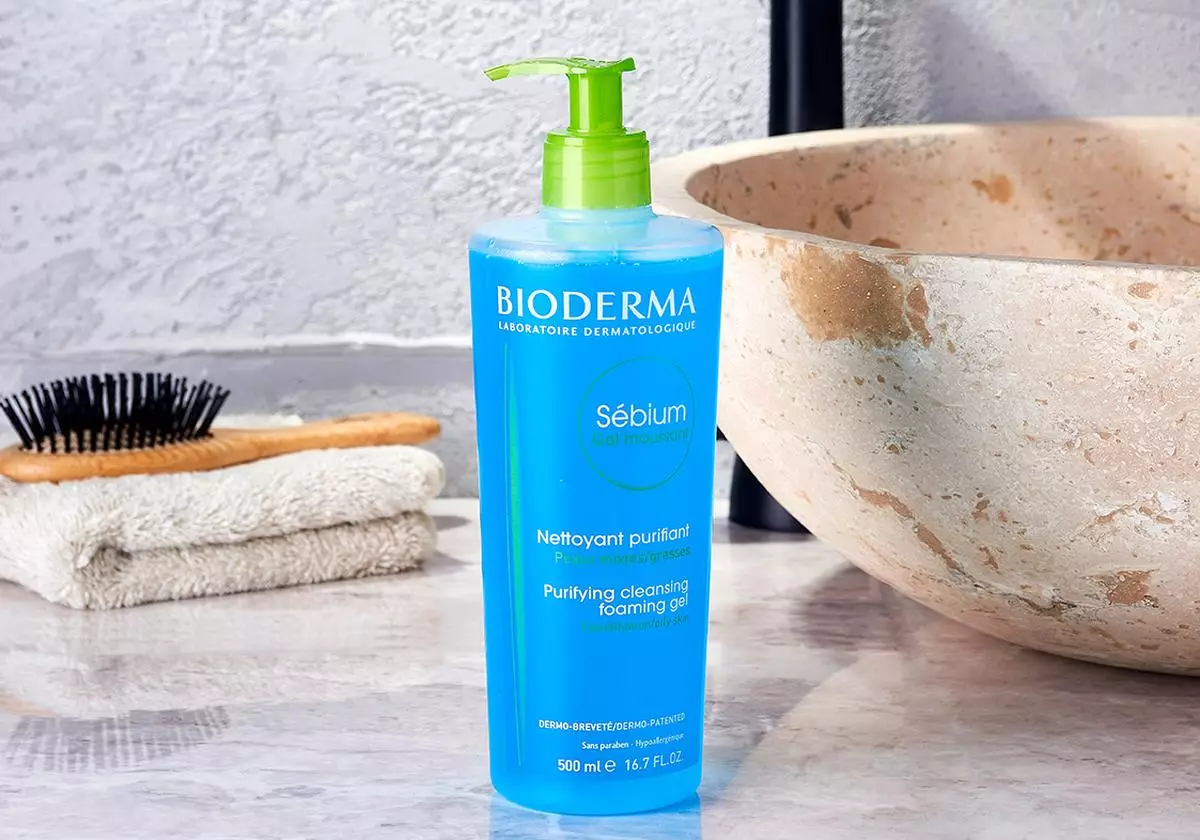 غسول بيوديرما الأزرق مثالي لعلاج البشرة الدهنية والمركبة، وكذلك للتعامل مع مشاكل البثور.