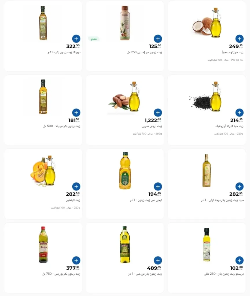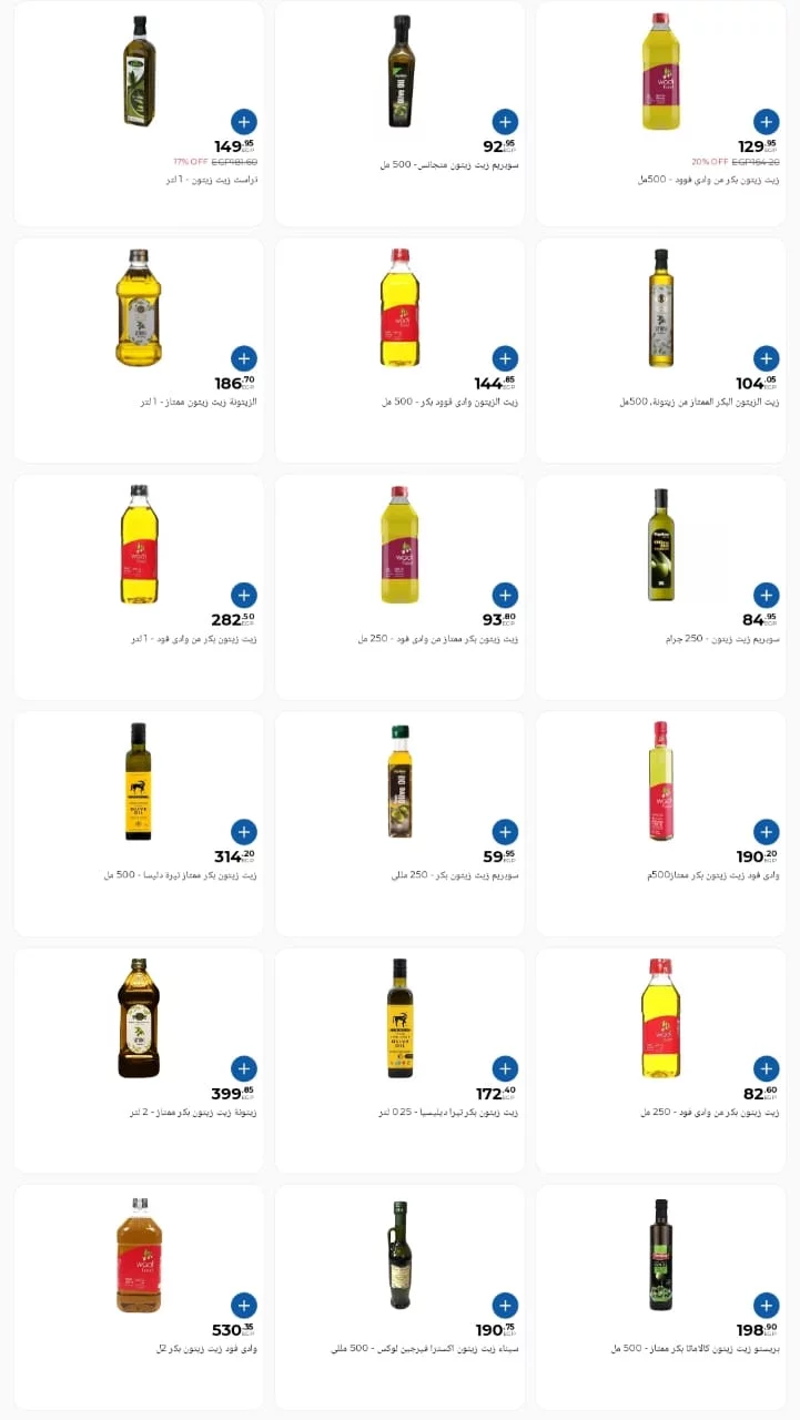 - حاليًا، يُباع زيت الزيتون الفاخر (1 لتر) في مصر بسعر 186.70 جنيه مصري.