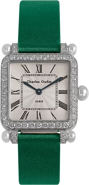 تتميز هذه الساعة الجريئة بالحيوية والأنوثة، تشبه قطعة من المجوهرات الراقية التي تتناسب مع جميع المناسبات. تتميز بشكل دائري ومرصعة بالألماس واللؤلؤ، وتحتوي على عقارب من الفولاذ الأزرق. وبنظرة على أسعار ساعات تشارلز أودين في الإمارات، يمكن أن تكون في الفئة الأعلى من حيث السعر، حيث يمكن أن يصل سعرها إلى 72000 دولار أمريكي، ما يعادل 264456.00 درهم إماراتي.