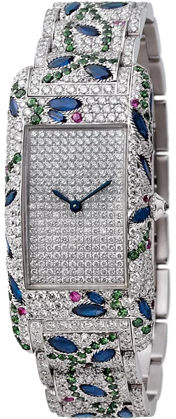 تعبر عن فخامة الأنوثة، وهي ساعة مستطيلة مصنوعة من الذهب عيار 18 ومزخرفة بمجموعة من الأحجار الكريمة بتصاميم متنوعة، ولها مشبك أرديون من الذهب ومرصع بالألماس. وتبلغ قيمتها 31000 دولار أمريكي أي ما يعادل 113863.00 درهم إماراتي.