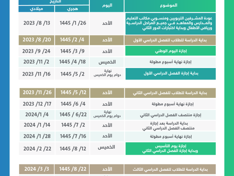 موعد بداية الفصل الدراسي الثالث في المملكة السعودية 1445