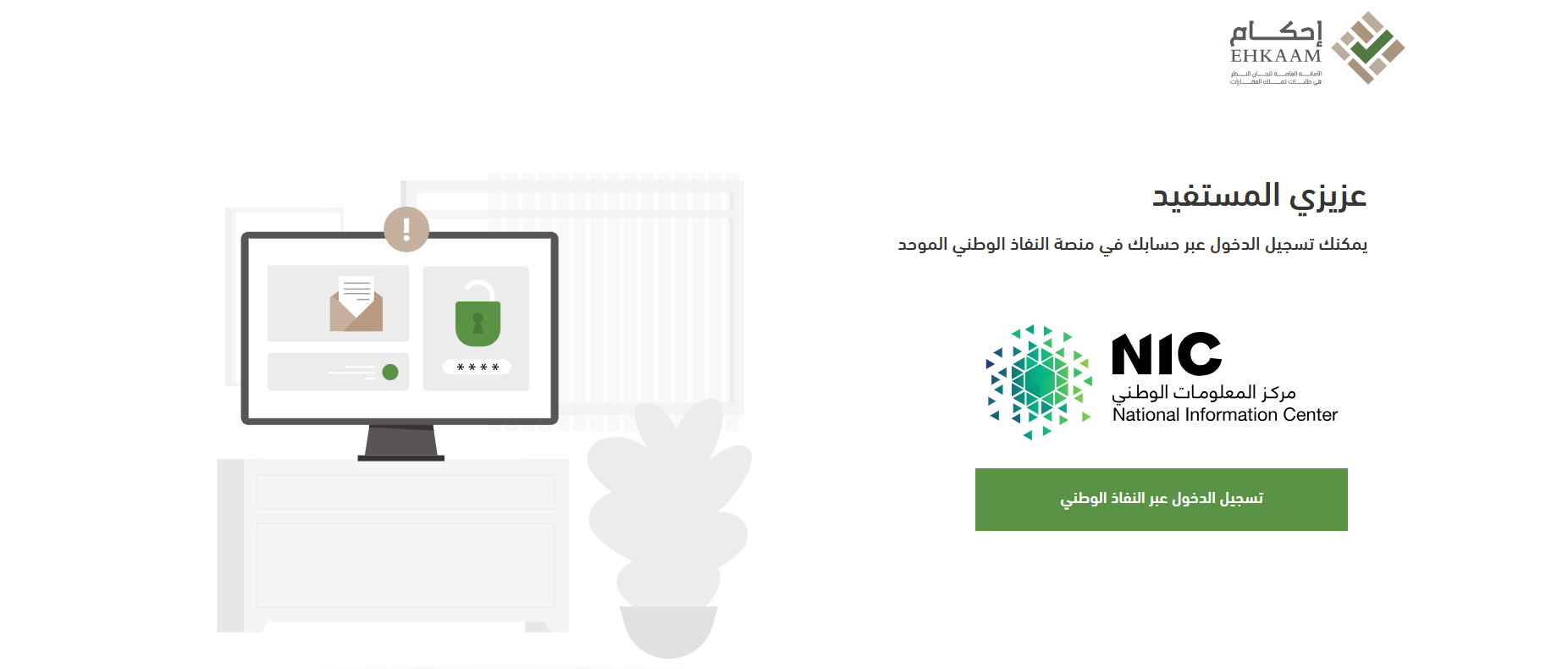 - سيتم تحويلك إلى الصفحة الرئيسية للمنصة الإلكترونية إحكام.