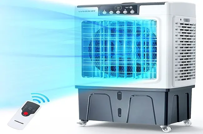 هذا جهاز تكييف متحرك صمم للمناطق الصحراوية ذو سعة تخزين تبلغ ستين لتراً.