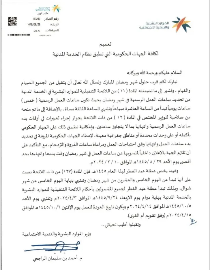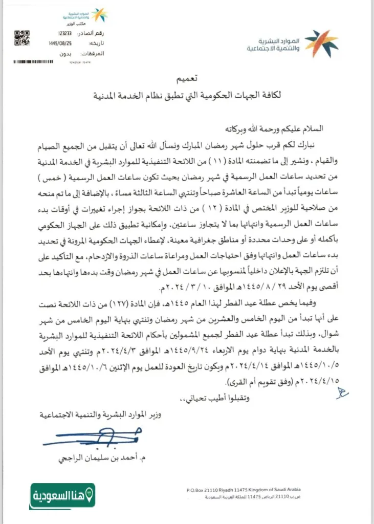 أوقات عمل المؤسسات الحكومية في شهر رمضان.