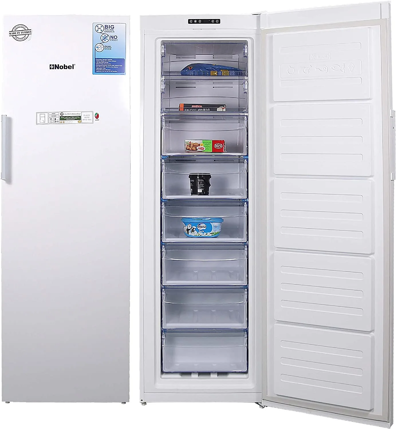 - يحتوي الفريزر نوبل على ميزة نوفروست التي تمنع تجمد الثلج مع الحفاظ على درجة حرارة الأطعمة المناسبة.