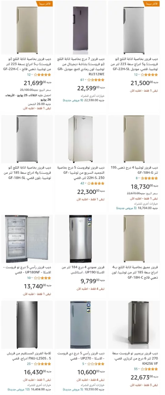 ديب فريزر من توشيبا رأسي4 درج195 لترذهبي18730 جنيه مصري