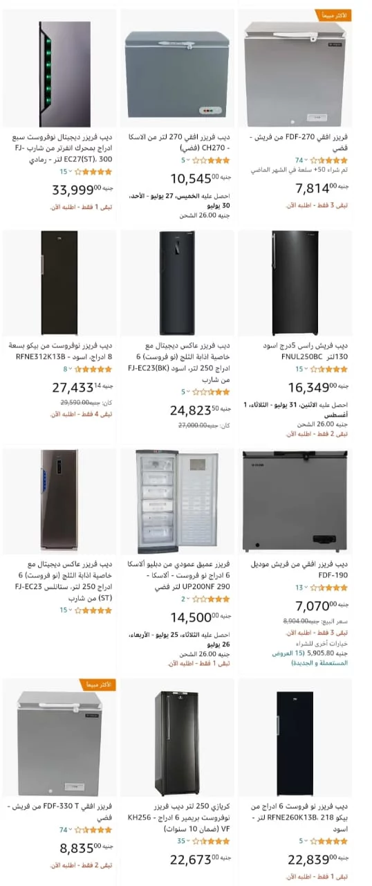 • يصل سعر الفريزر العميق فريش بسعة 250 لتر إلى 9799 جنيه مصري.