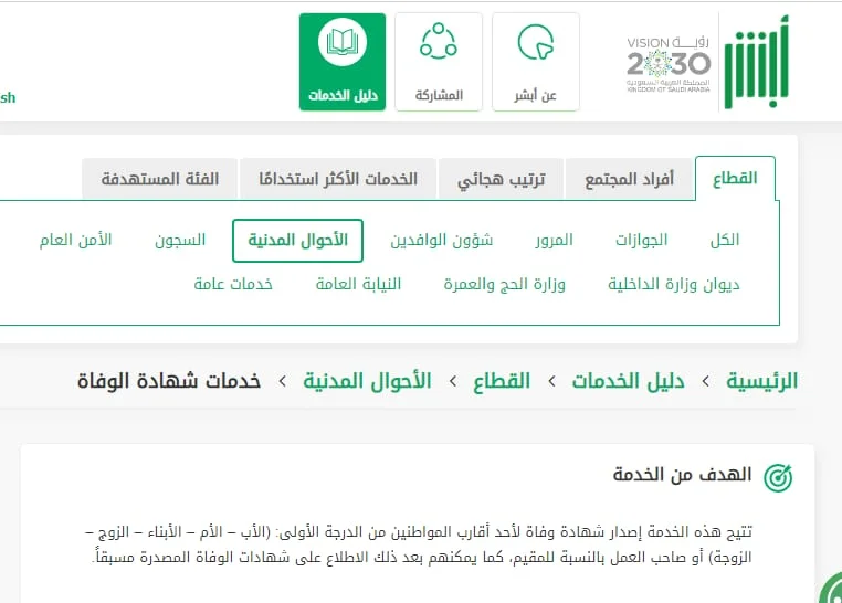استخراج وعرض شهادة الوفاة إلكترونيًا عبر أبشر بالخطوات 1445