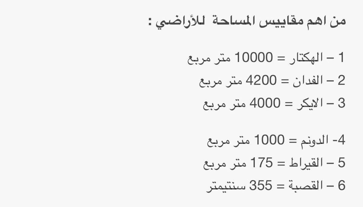 قياسات الطول والعرض بالدونم والمساحة بالمتر المربع