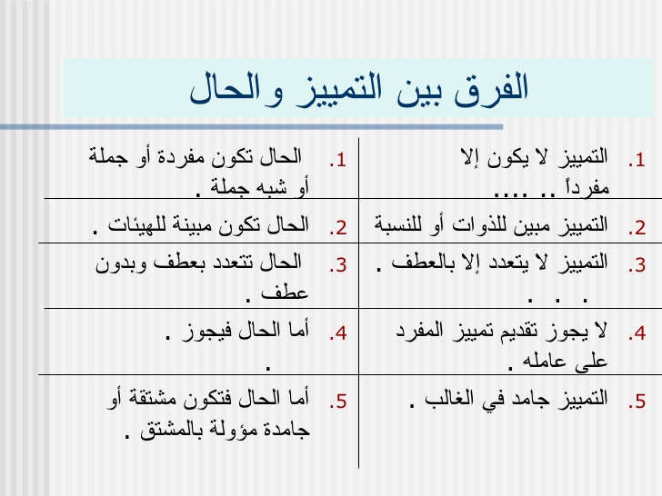 – يمكن اعتبار التمييز أكثر تفصيلاً وتحليلاً من الحال.