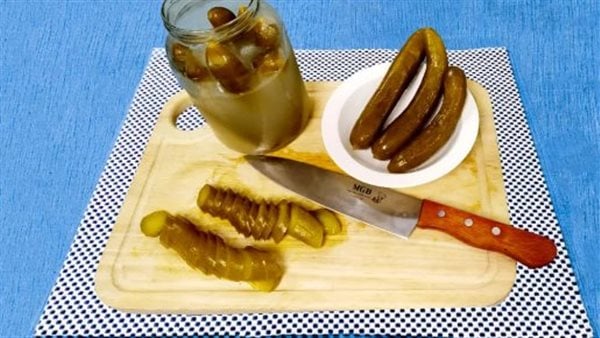 - ضعي الخيار في البرطمان بدون فتحه أو تقطيعه بالسكين بل يظل مغلق كما هو.