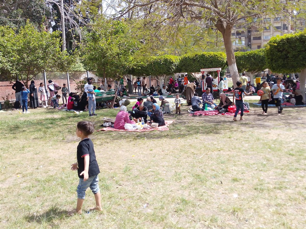 وافترشت الأسر الملايات على الأرض، وحرص الكثيرون على إحضار أطعمة شعبية، خاصة الفسيخ والرنجة والبصل، في أجواء احتفالية ارتبطت بشم النسيم وأعياد الربيع. كما انتشرت محلات بيع الترمس والذرة والبالونات على بوابات الحديقة وفي محيطها.