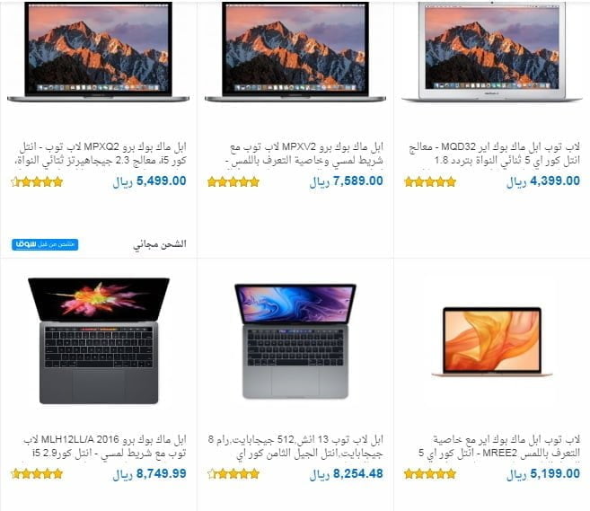 - عرضت لاب توب ماك بوك أير 13 بمعالج انتل كور i5 ذو نواة مزدوجة بسعر 4.999 ريال سعودي.