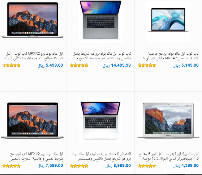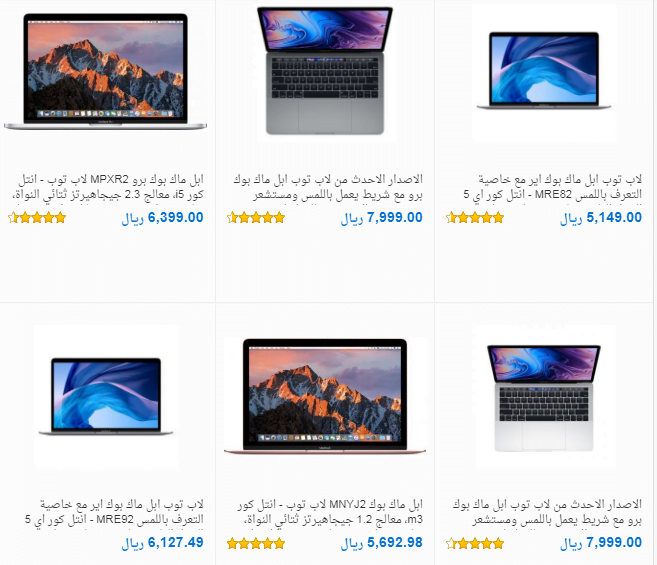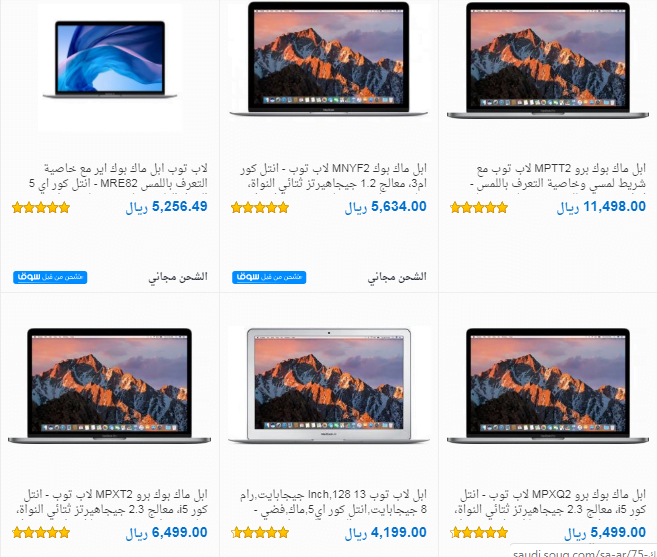 - بالكشف عن العبارة في اللغة العربية: “يعرض لاب توب ماك بوك برو 13 بمعالج إنتل كور i5 ثنائي النواة بسعر قدره 4.499 ريال سعودي.”