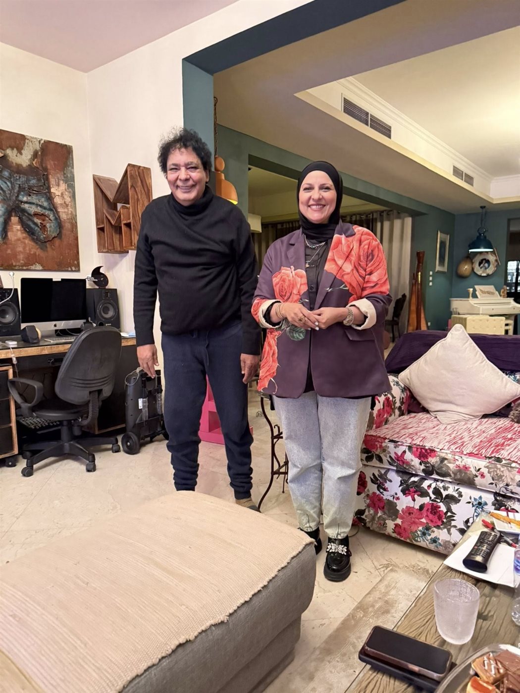لقطات من زيارة دعاء فاروق لـ الكينج محمد منير في منزله |صور