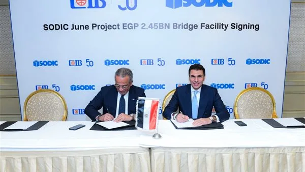 وقّع البنك التجاري الدولي مصر CIB، البنك الرائد في القطاع الخاص في مصر، تسهيلًا ائتمانيًا في صورة قرض معبري بقيمة 2.45 مليار جنيه لصالح شركة السادس من أكتوبر للتنمية والاستثمار سوديك الشركة العقارية الرائدة والمتميزة في السوق المصري، وذلك لتمويل العمليات الإنشائية لمشروع June في الساحل الشمالي.
