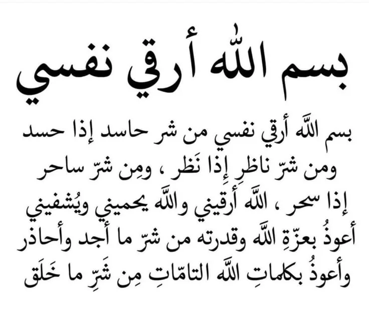 - باسم الله أرقيك، من كل شيء يؤذيك، من شر كل نفس، أو عين حاسد، الله يشفيك باسم الله أرقيك