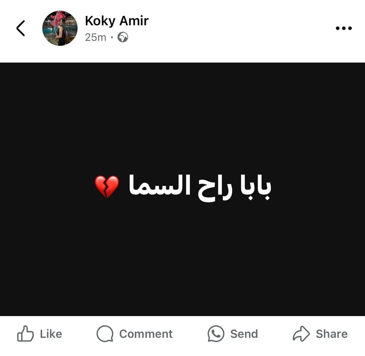 وأعلنت ابنته خبر الوفاة من خلال منشور مؤثر عبر صفحتها الشخصية على موقع فيسبوك، كتبت فيه: بابا راح السما، في لحظة موجعة اختزلت مأساة طويلة من الألم والمعاناة مع المرض.